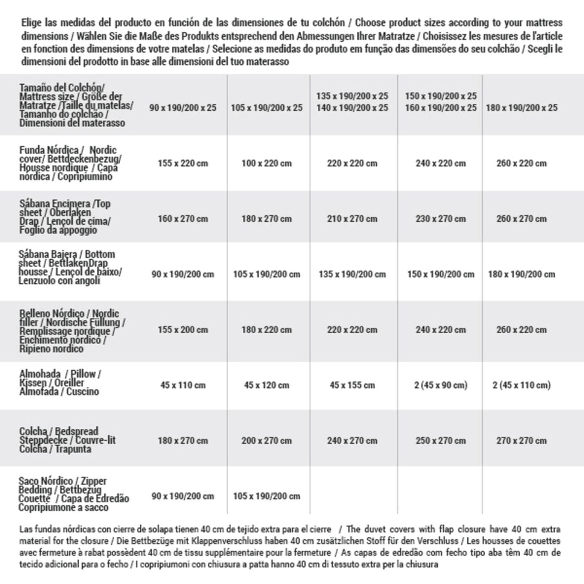 Maße Bett 180 cm (260 x 270 cm), Bett 150 cm (230 x 270 cm), Bett 135 cm (210 x 270 cm), Bett 90 cm (160 x 270 cm)